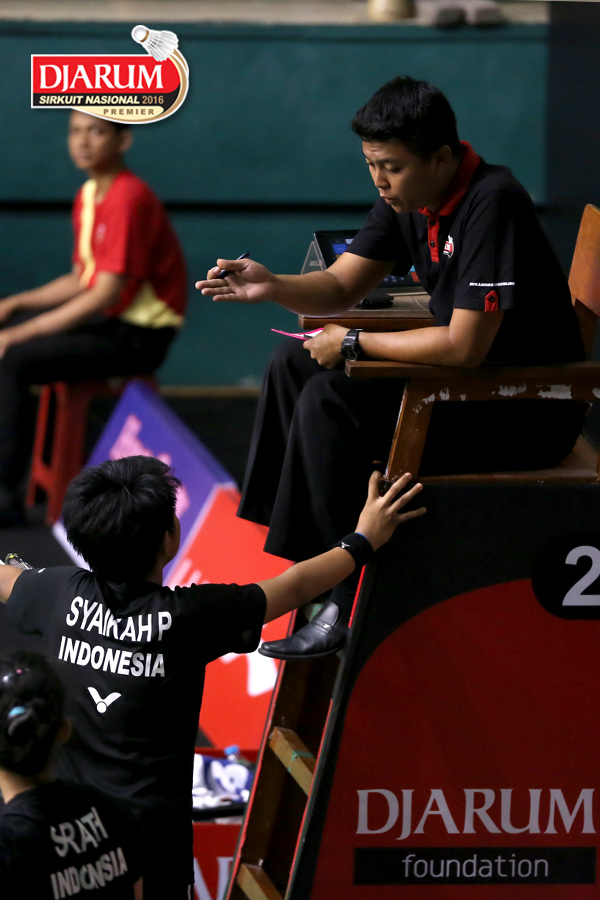 Putri Syaikah (Exist) Saat Melakukan Protes Kepada Umpire.