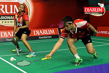 Rahmad Julio Rafli Ritonga/Helena Ayu Puspitasari (Djarum Kudus) Mengembalikan Shuttlecock