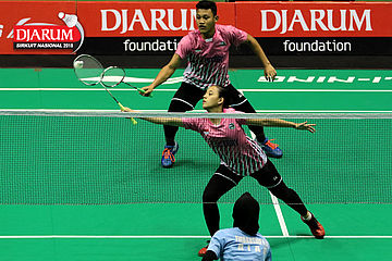 Muhammad Nur Hafizi/Mia Dian Nurlia (PB Djarum Kudus) Menyambar Pengembalian