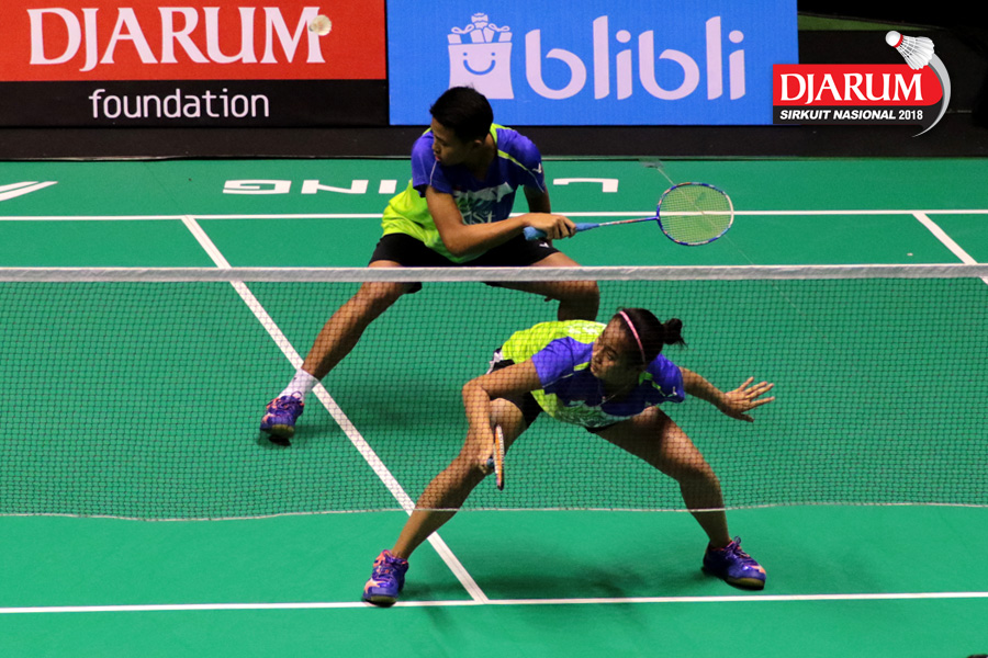 Yoggi Pamungkas/Helena Ayu Puspitasari (PB Djarum Kudus) Mengembalikan Shuttlecock