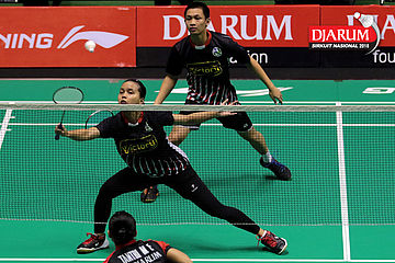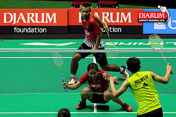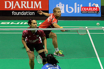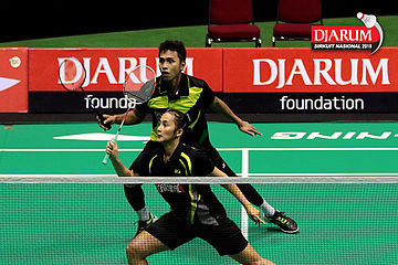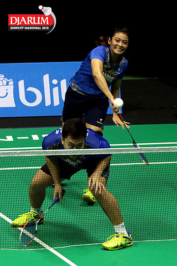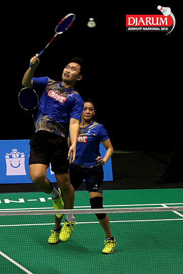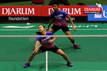 Riky Widianto/Masita Mahmudin (Tjakrindo Masters/Jaya Raya Jakarta) Mengembalikan Shuttlecock