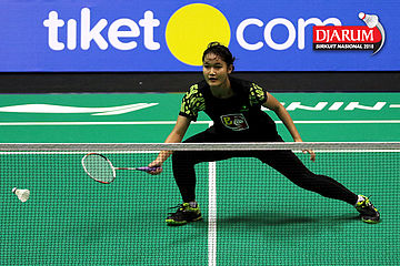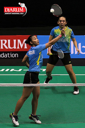 Gity Gabriel Rambing/Sang Ayu Putu Kharisma Maharani (PB Djarum Kudus) Melepaskan Serangan