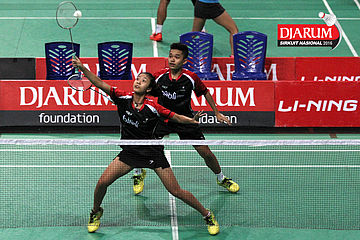 Ardiansyah Putra/Devi Tika (Berkat Abadi) bersiap menyambar pengembalian tanggung