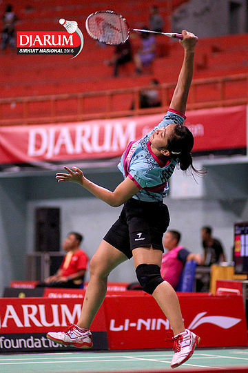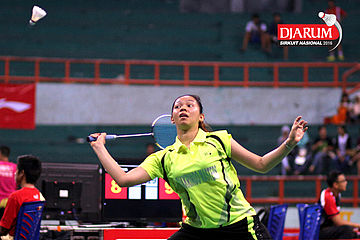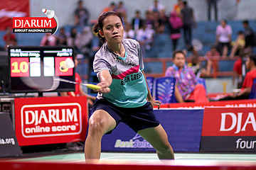 Aprilia Yuswandari (Semen Gresik) mengembalikan shuttlecock