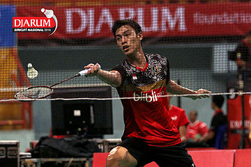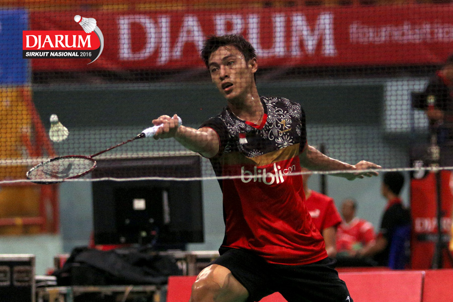 Wisnu Yuli (Djarum Kudus) menghadang serangan