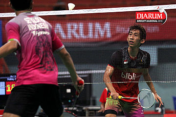 Wisnu Yuli (Djarum Kudus) bersiap menyambut pengembalian