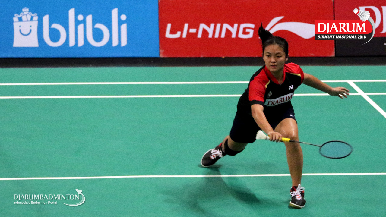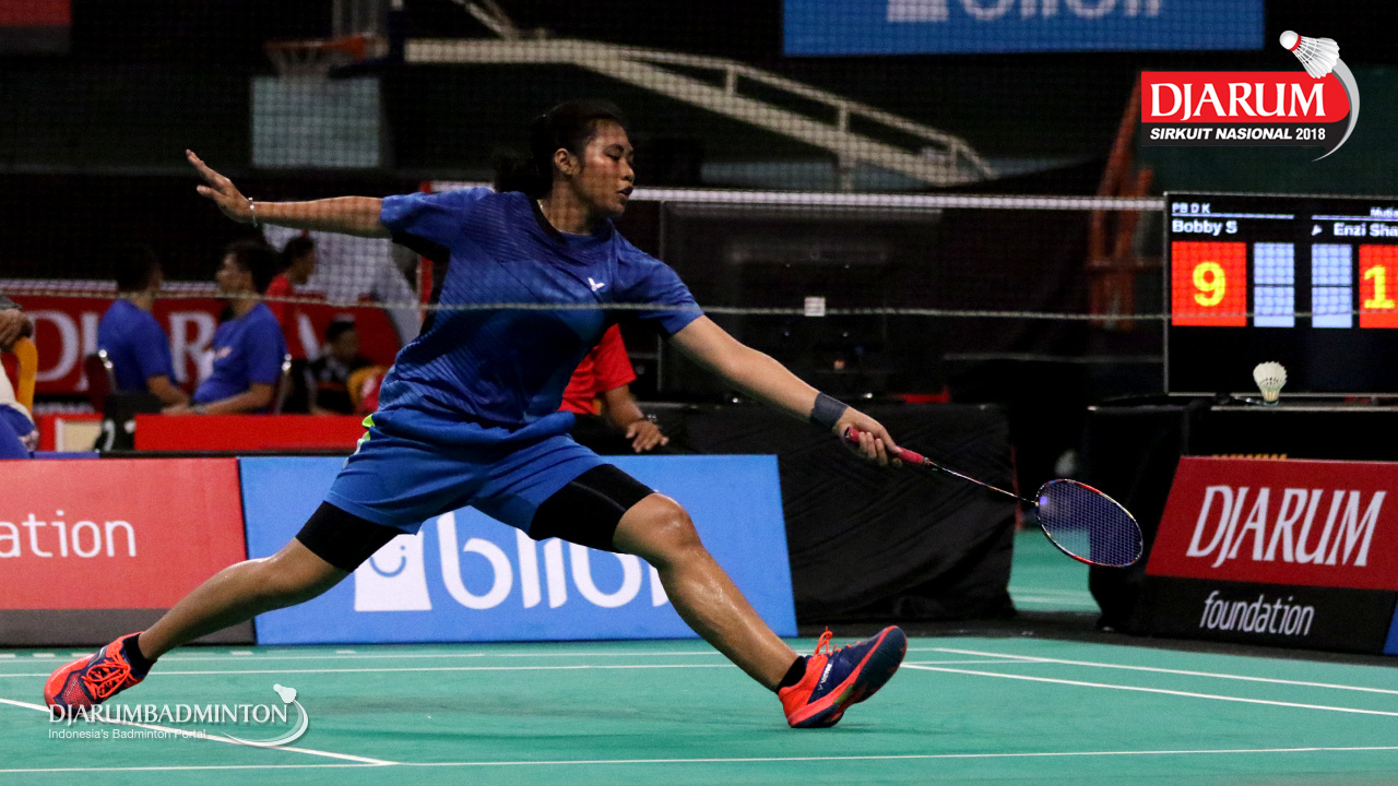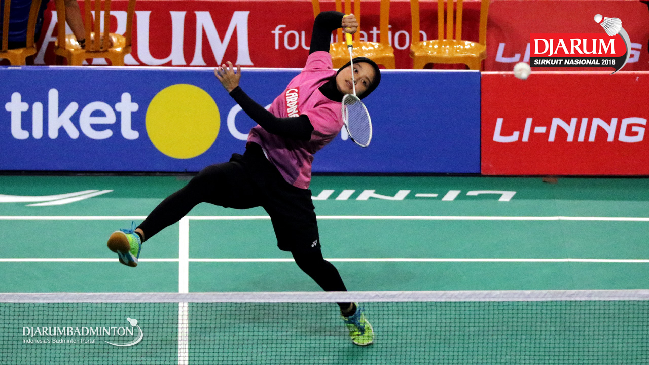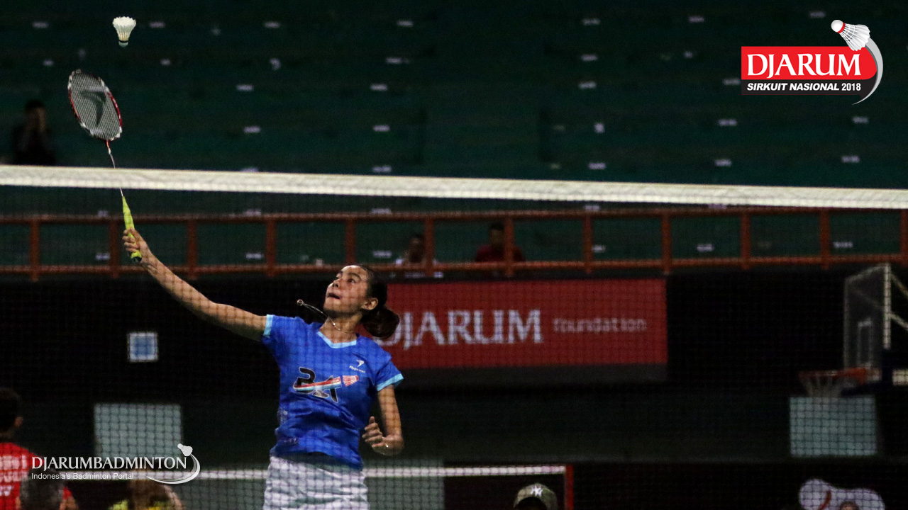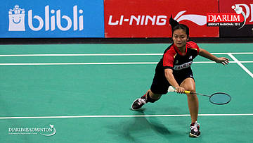 Savira Sandradewi (PB Djarum Kudus) bersiap menghadang serangan