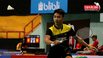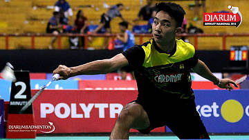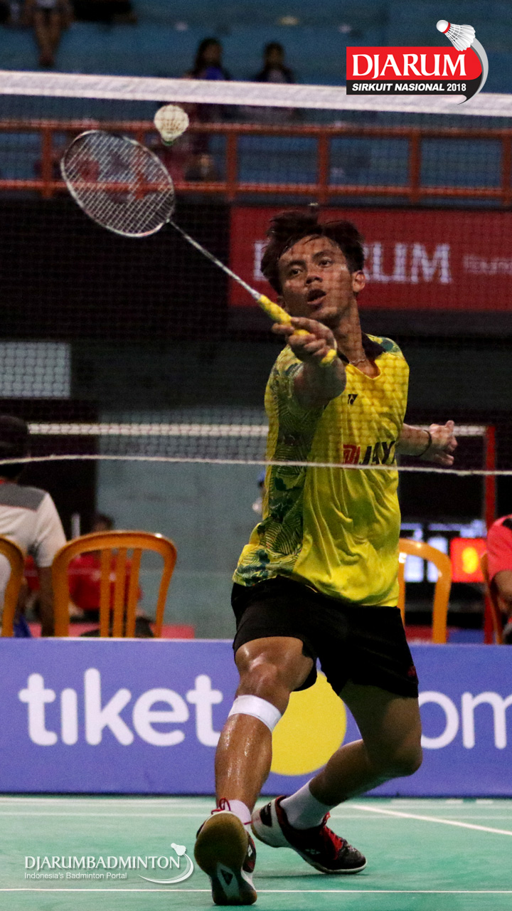 Mochamad Rehan Diaz (Mutiara Cardinal) mengembalikan shuttlecock