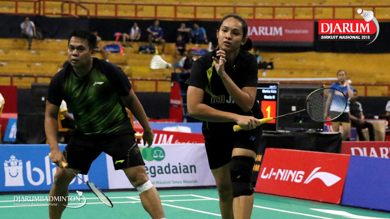 Markis Kido/Masita Mahmudin (Jaya Raya Jakarta) bersiap menghadang serangan