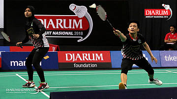 Muhammad Juan Elgiffani/Windi Siti Mulyani (PB Victory Bogor) menyambut pengembalian