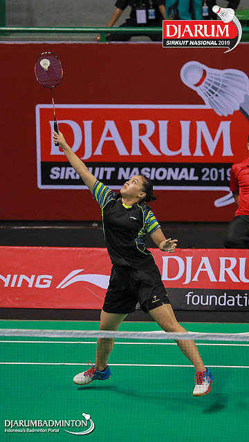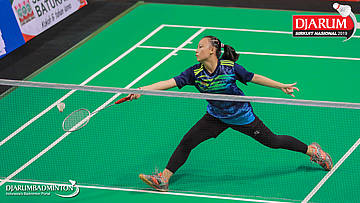 Irdina Naurah Mirza (PB Djarum, Kudus) menggapai shuttlecock