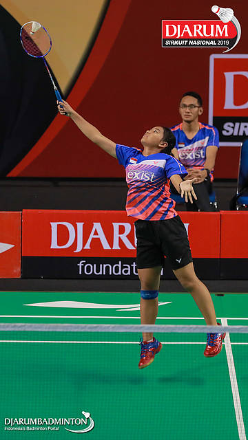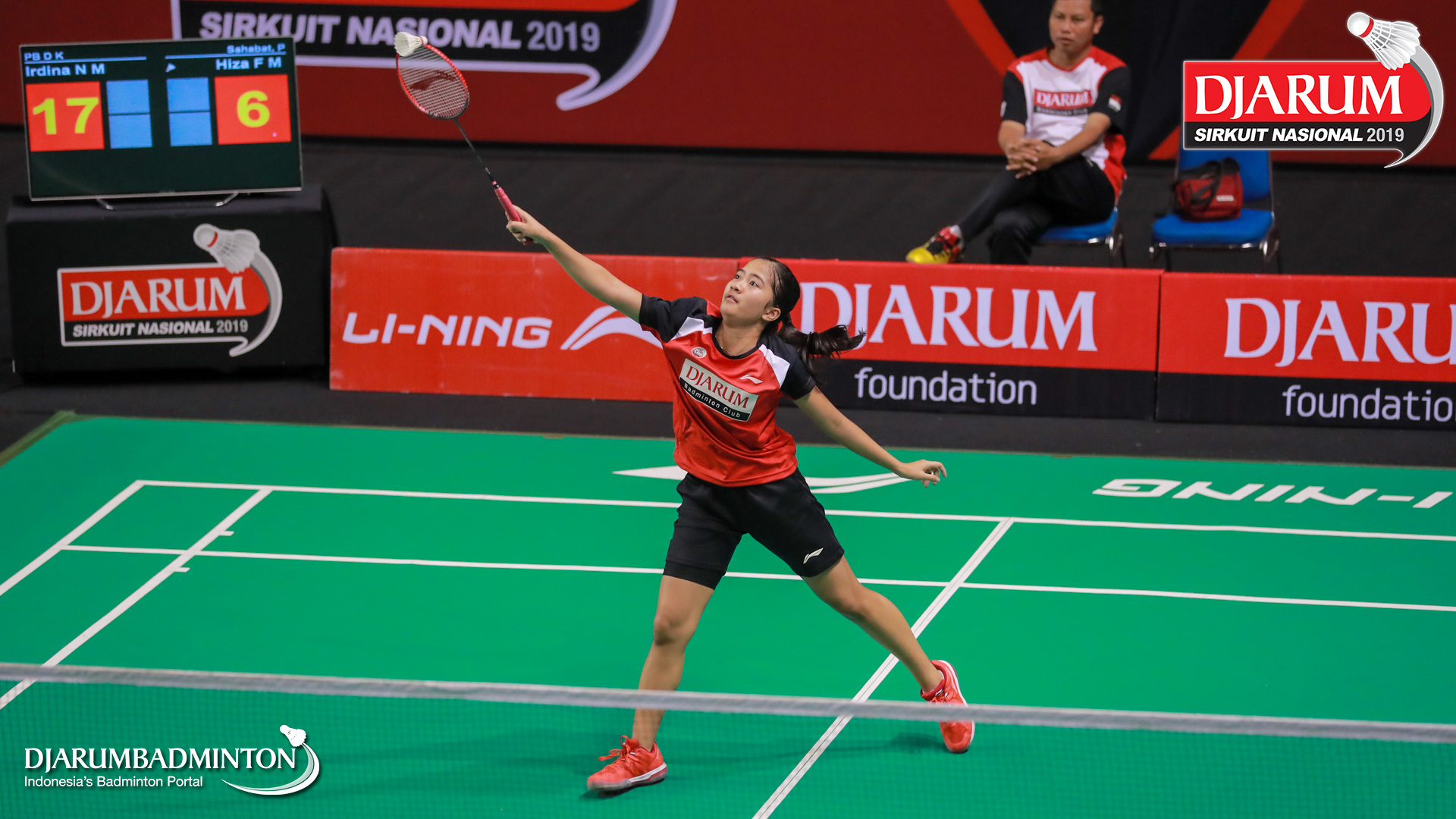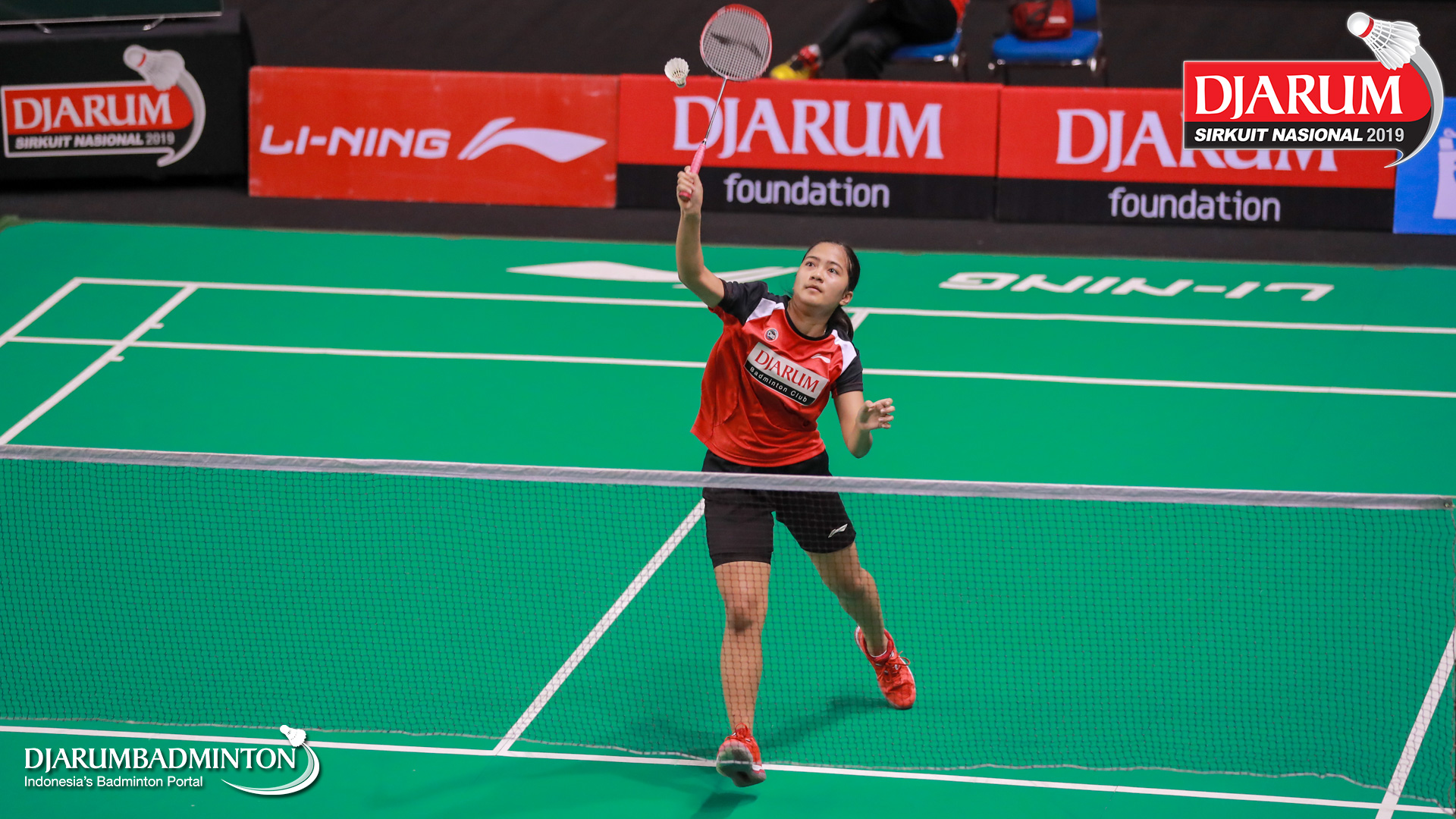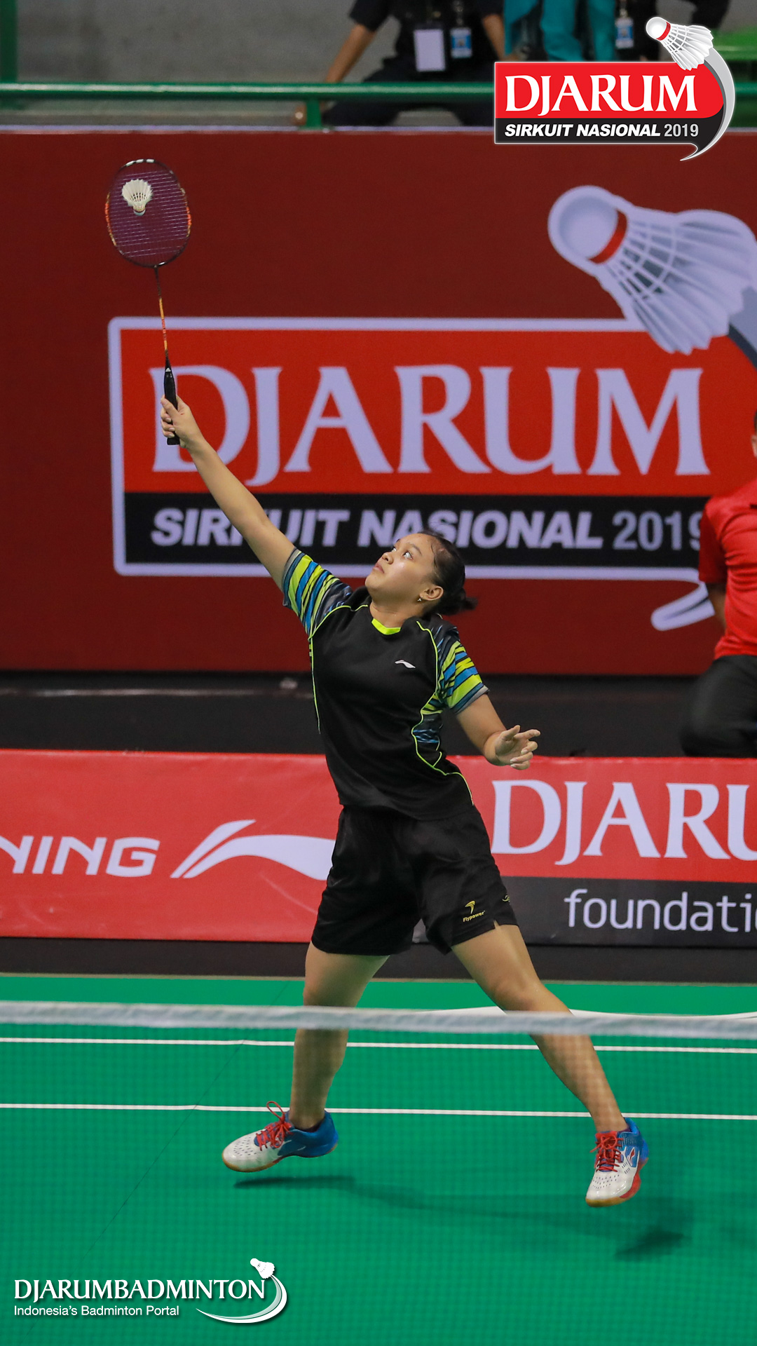 Irdina Naurah Mirza (PB Djarum, Kudus) bersiap menyambar shuttlecock