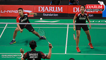 Calvin Kristanto+Ayu Gary Luna Maharani (PB Djarum, Kudus) menyambut serangan