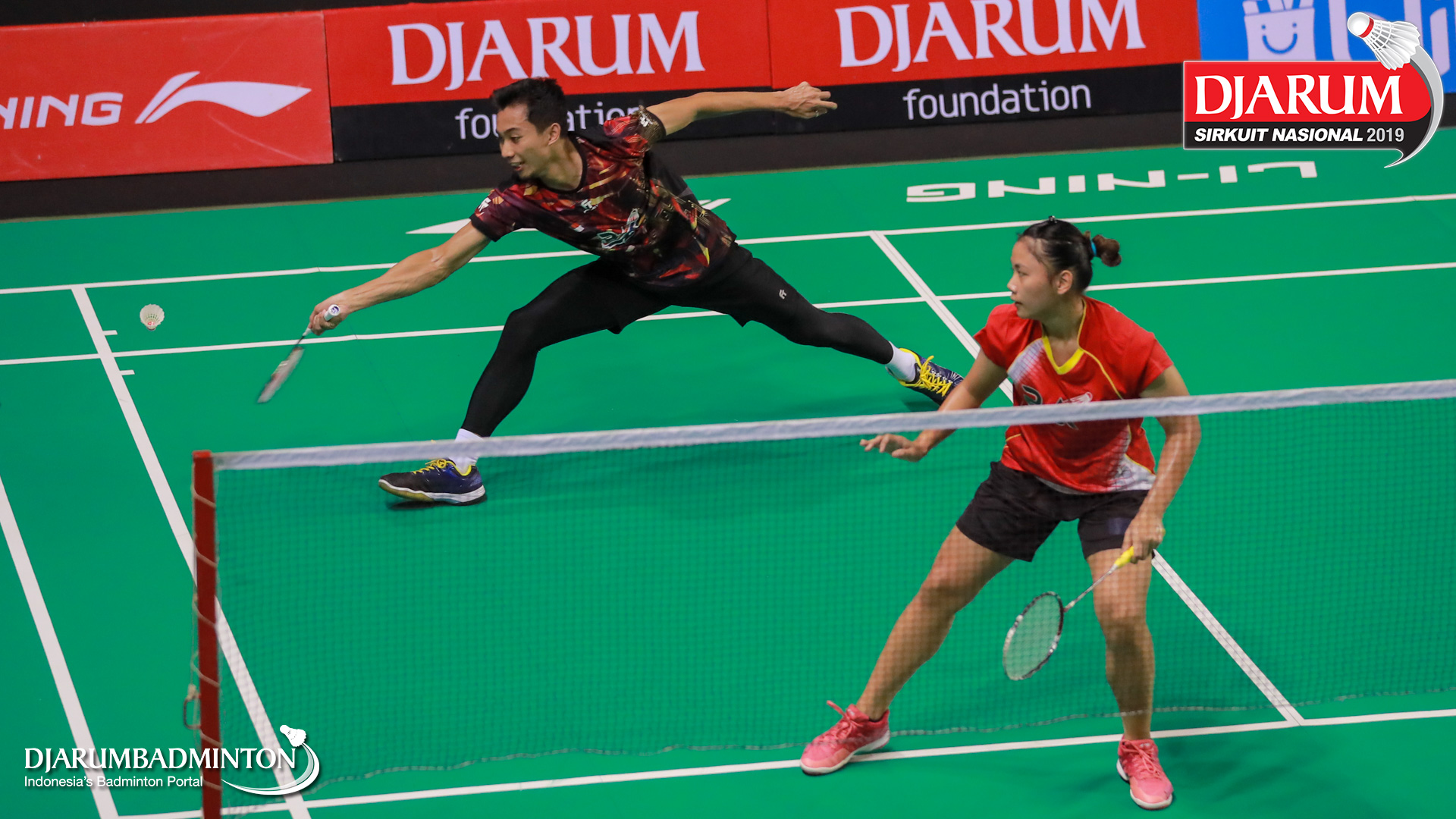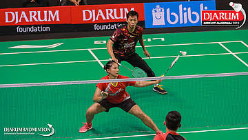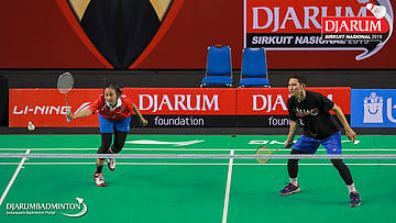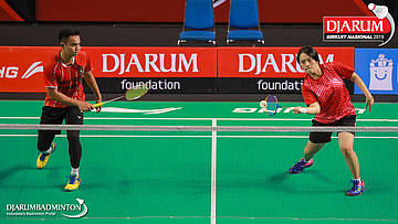 Yantoni Edy Saputra+Rosyita Eka Putri Sari (PB Djarum, Kudus) menyambut shuttlecock