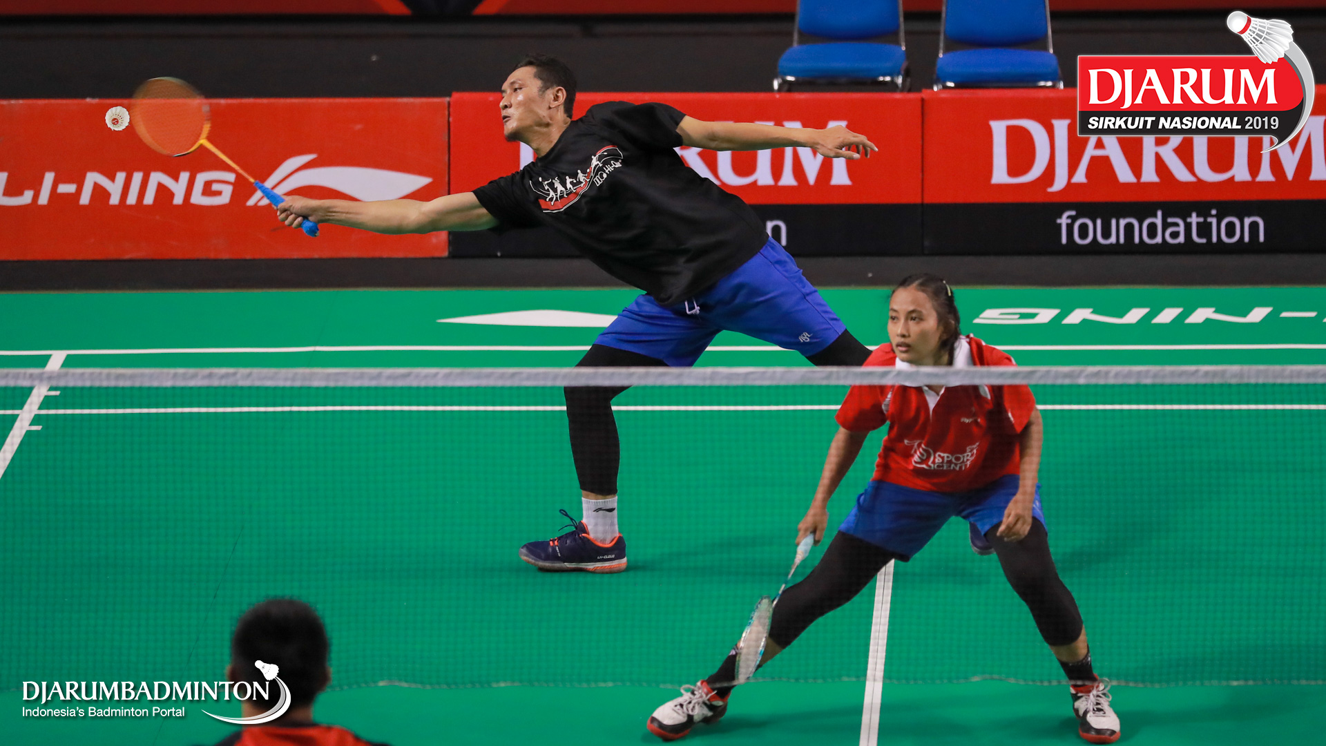 M. Fauzan Wardhana+Kharisma Budiwati (Union Palembang) berusaha mengembalikan shuttlecock