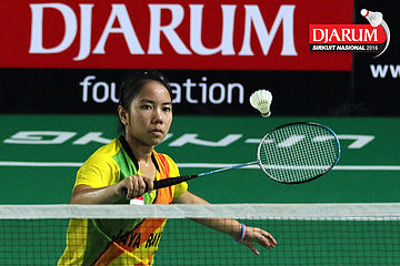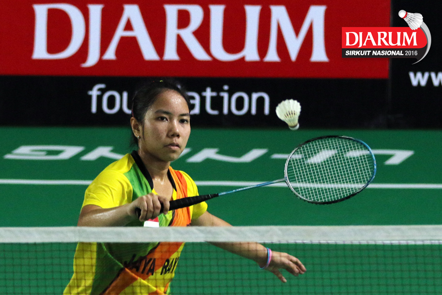 Akbar Bintang/Della Augustia (Djarum Kudus) menghadang serangan.