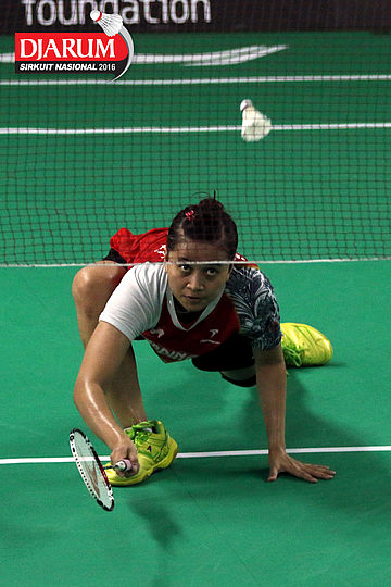 M. Robby Darwis/Monika Insany (Mutiara Cardinal) mengembalikan shuttlecock.