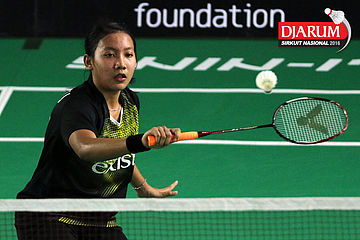 Agripina Prima Rahmanto/Anneke Feinya (Jaya Raya) melepaskan serangan.