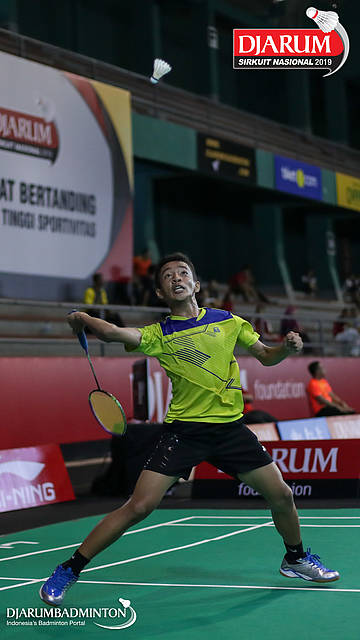 Jovi Michael (Focus Badminton Club, Jaksel) menyambut shuttlecock