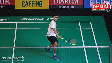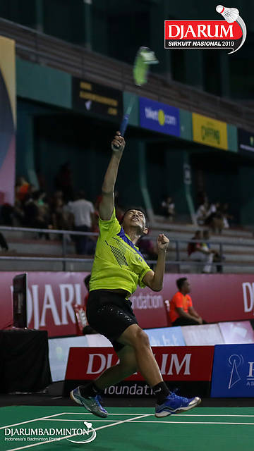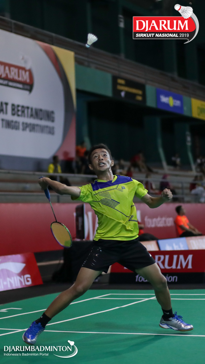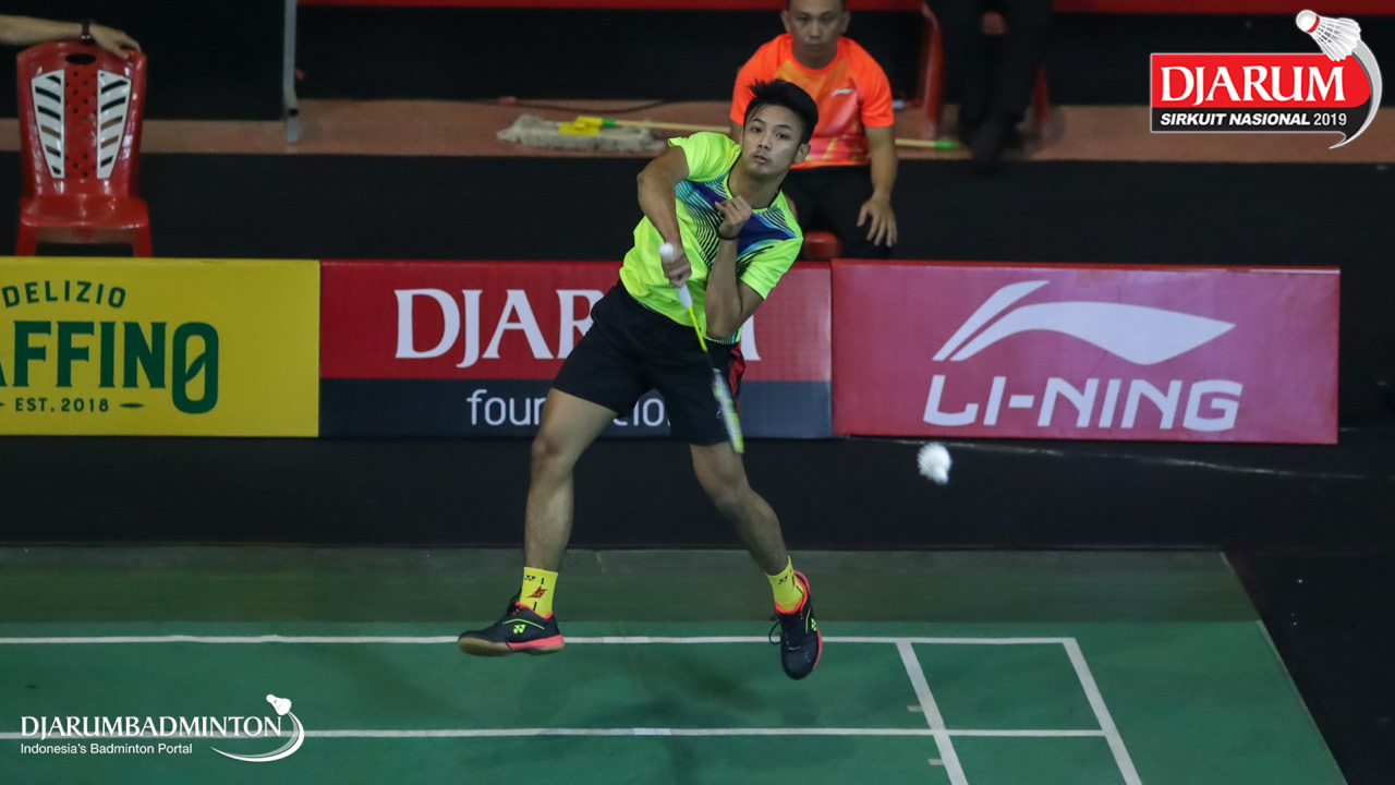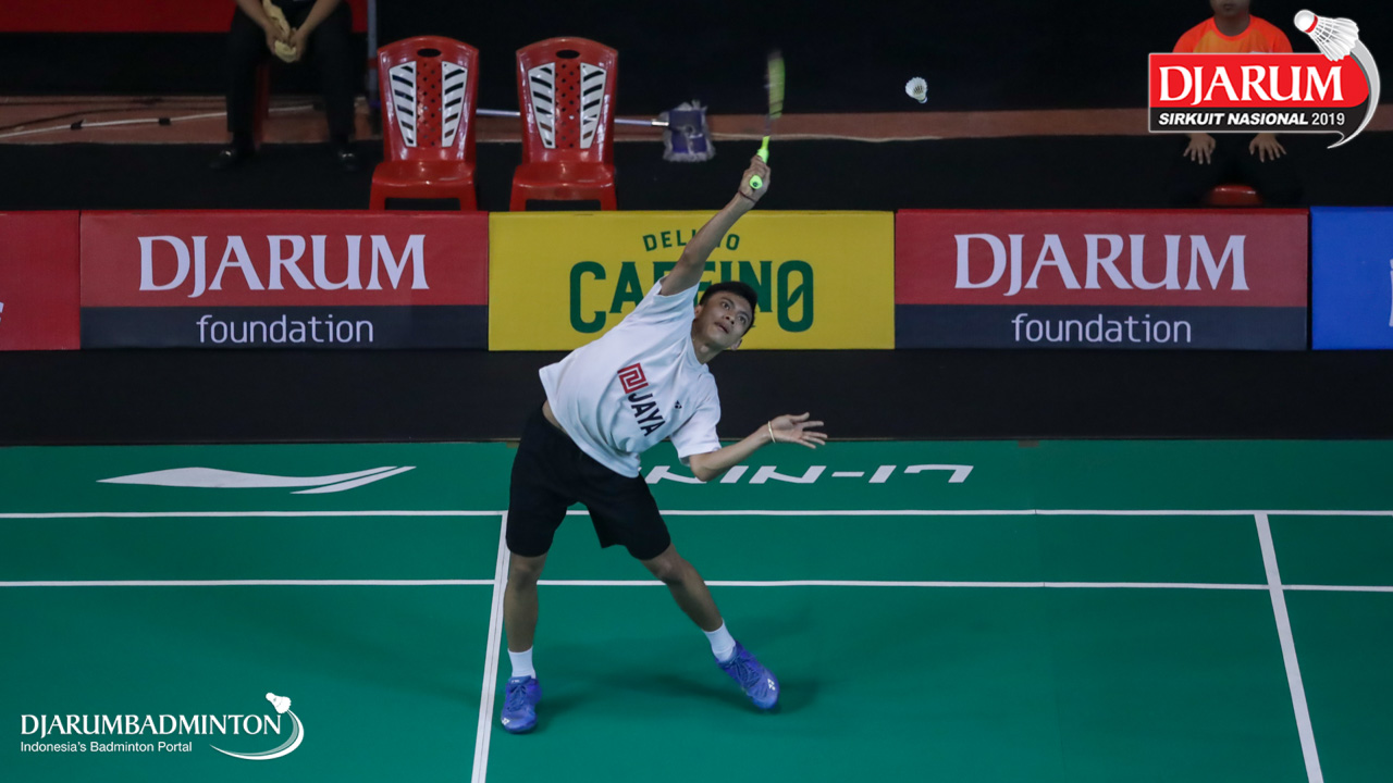 Nathanael Valleirmen (Daihatsu Candra Wijaya) menyambut shuttlecock