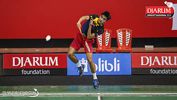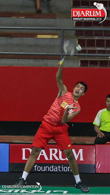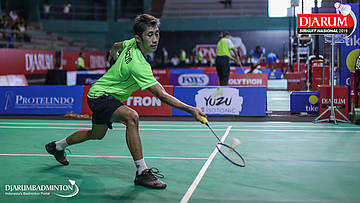 Panji Ahmad Maulana (Daihatsu Candra Wijaya) bersiap menyambut shuttlecock