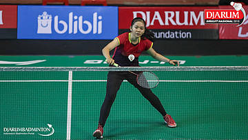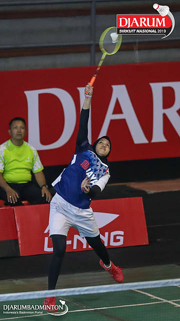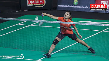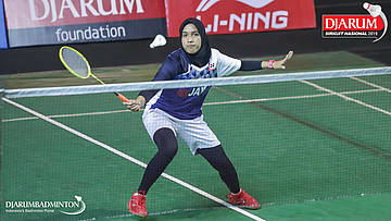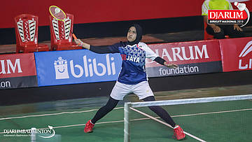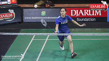 Sarah Daisy Theresia Christina Rambitan (Kasih, Jaksel) bersiap menyambut shuttlecock