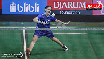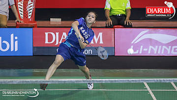 Ivanna Celia Handoyo (PB Djarum, Kudus) menyambut shuttlecock