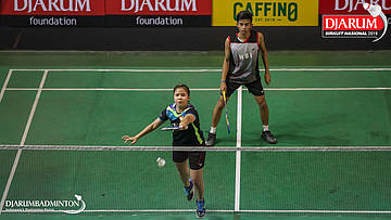 Ihsan Adam Wirawan+Dea Putri Wales (Keshab Timur Samarinda+PB AIC Badminton Academy) bersiap menyambut serangan