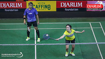 Priayi Resa Anang+Fidelya Rondonuwu (champion+Winner Manado) menyambut shuttlecock
