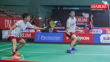 Michael Kaldrian Wiguna+Swiking Imanuel Wuisan (Daihatsu Candra Wijaya) berusaha melekaukan pertahanan