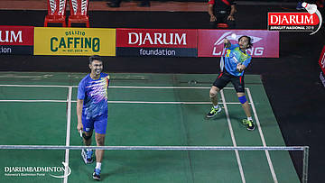 Joshua David Wardana+Tessa Anjali Karouw (Tangkas, Jaksel) bersiap menyambut shuttlecock