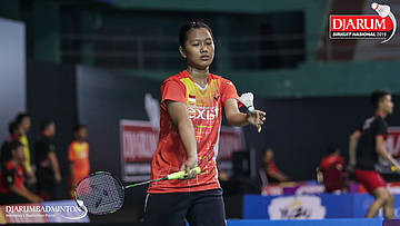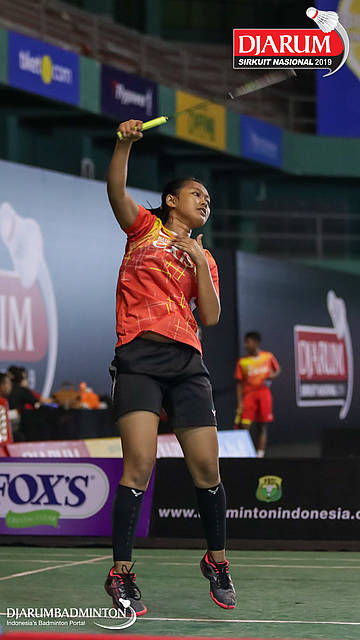 Tiara Ayuni Wulandari (Exist Badminton Club) mengembaliakan shuttlecock