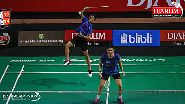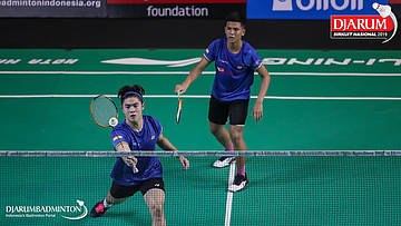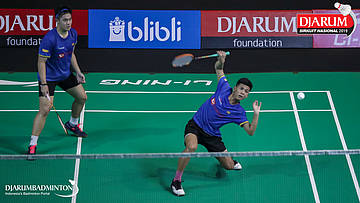 Christian Candra Halim+Eq Prayoga (Daihatsu Candra Wijaya) menyambut shuttlecock