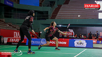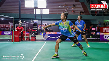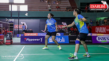 Nadiya Melati+Tiara Rosalia NURAIDAH (Pertamina Fastron, Jakut) bersiap menyambut shuttlecock