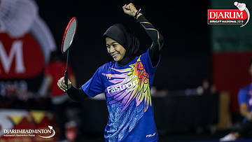 Alya Rahma Mulyani (PB Djarum, Kudus) menyambut pengembalian