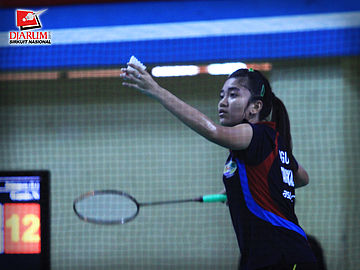 Ganis (Pelatprov DKI) melakukan pengembalian shuttlecock