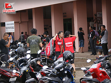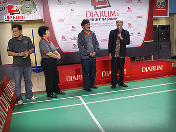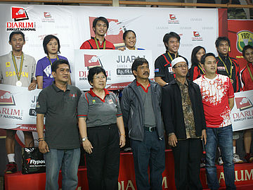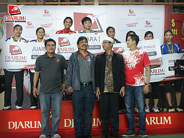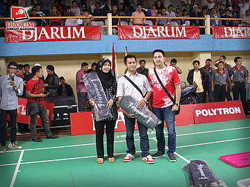 putra dan putri PB Djarum berkumpul menunggu pembagian hadiah