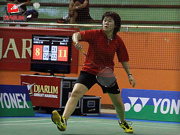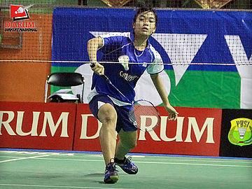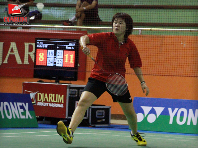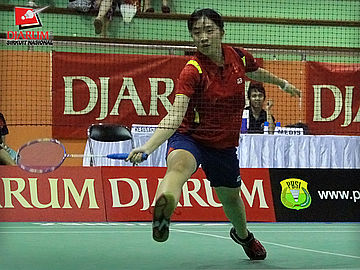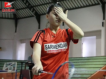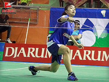 Pemain Djarum Kudus, Aida AA (kiri) tengah mendapatkan instruksi dari pelatihnya, Maria Elfira Christina kala berhadapan dengan pemain Jaya Raya, Shinta JN babak kualifikasi tunggal remaja putri Djarum Sirkuit Nasional Bali di GOR Purna Krida, Badung