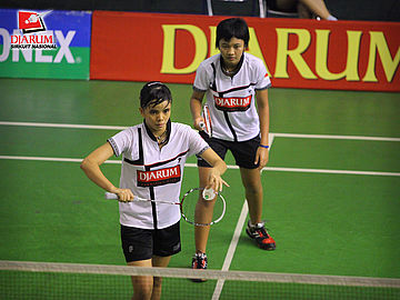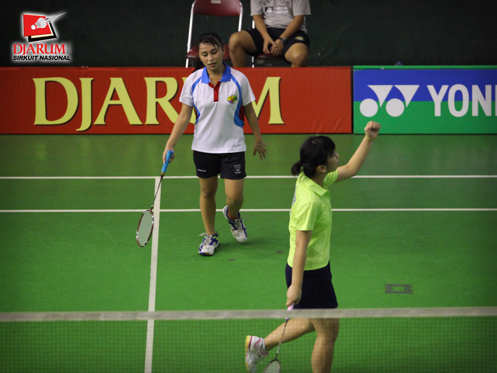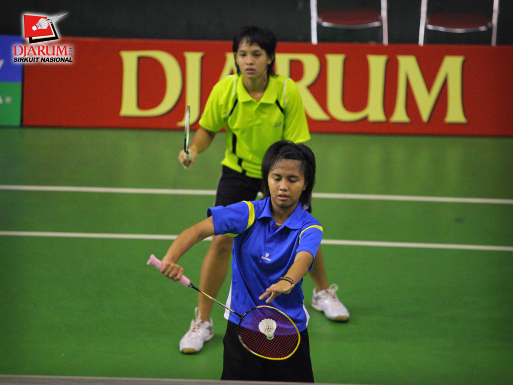 Pasangan Ganda Putri Djarum Kudus, melakukan serve