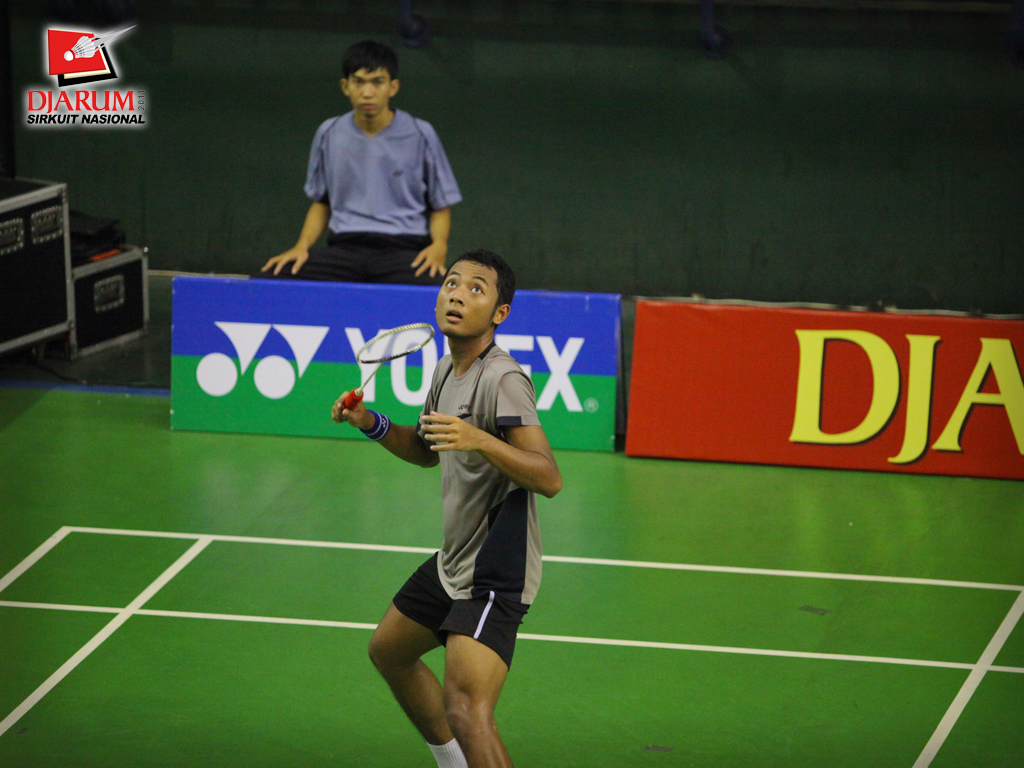 Rifan FI (Pelatprov PD) menatap datangnya kok