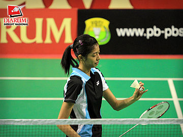 Sportivitas permainan ditunjukkan saat Pemain PB Djarum Kudus, Maria Kristin menang atas lawannya pemain Pelatnas, Ayu Wanda Tika dalam babak penyisihan dewasa putri Djarum Sirkuit Nasional Surabaya di GOR Sudirman, Surabaya, Selasa(1/11).