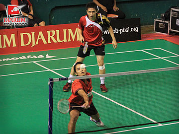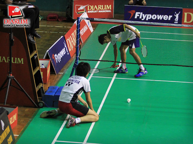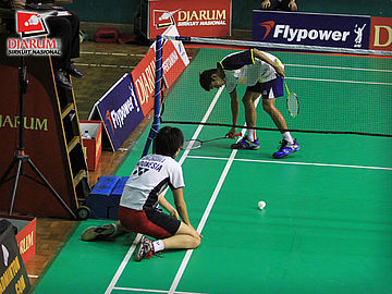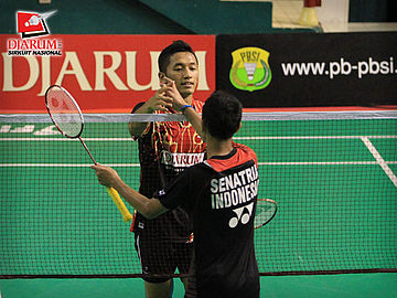Sportivitas permainan ditunjukkan saat pemain SGS PLN Bandung, Senatria Agus Setia Putra menang atas lawannya pemain PB Djarum, Pandu Dewantoro dalam babak perdelapan final dewasa putra Djarum Sirkuit Nasional Surabaya di GOR Sudirman.