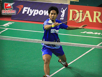 Ekspresi kekecewaan pemain Surya Baja, Silvina Kurniawan dalam babak Semifinal dewasa putri Djarum Sirkuit Nasional Surabaya di GOR Sudirman, Surabaya, Jum`at (4/11)