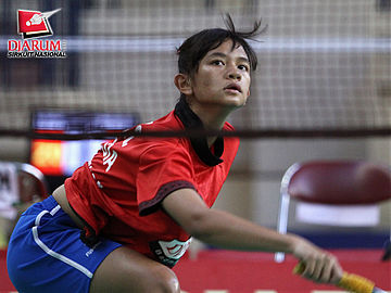 Pemain tunggal pemula putri asal PB Djarum, Ghaida Nurul berhasil mengatasi perlawanan pemain Indojaya BC, Isra Faradilla.
