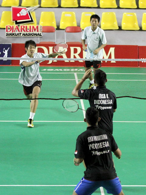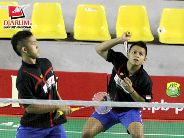 Pasangan ganda putra taruna PB Djarum Kudus, Jeka Wiratama/Kevin Ersa terlihat kompak saat bertanding.