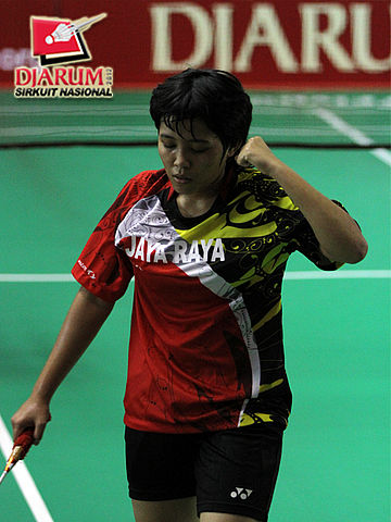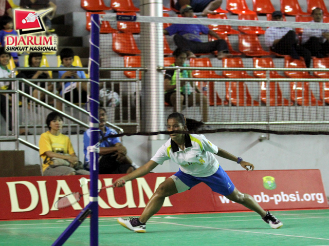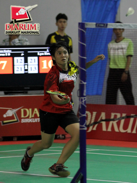 Lya Ersalita (Jaya Raya) ketika meladeni permainan netting Marsa Indah (PB Djarum Kudus).