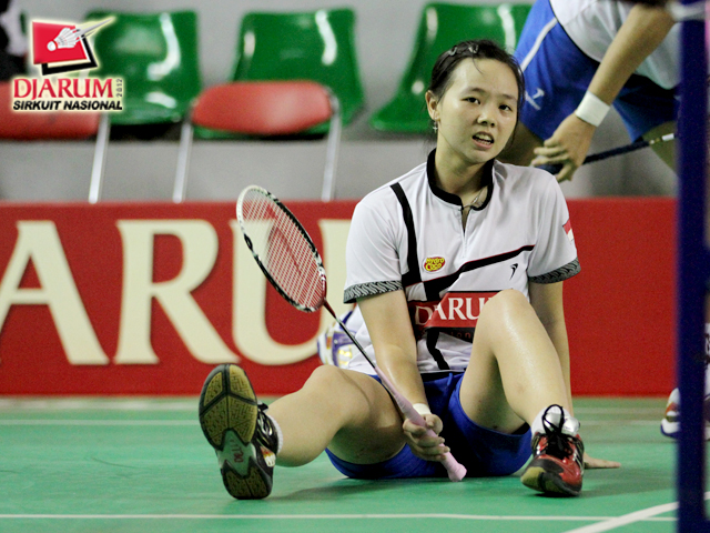 Afni Fadilah (Ragunan Jakarta) tampak tenang menyambut shuttlecock