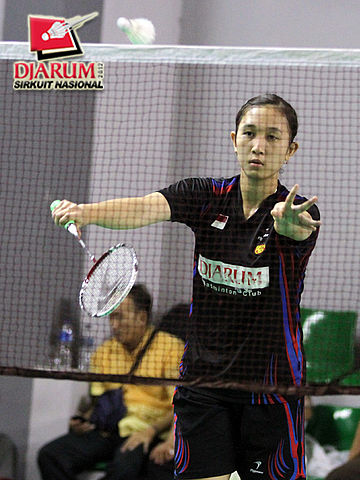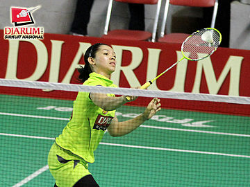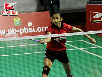 Tresna Novelia (PB Djarum Kudus) saat melakukan serve.