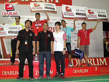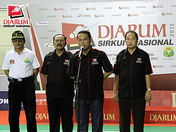 Walikota Cilegon, TB Iman Ariyadi (kedua dari kanan) saat menutup Kejuaraan Bulutangkis Djarum Flypower Sirkuit Nasional (Sirnas) Banten 2012.