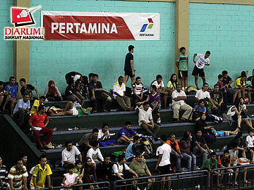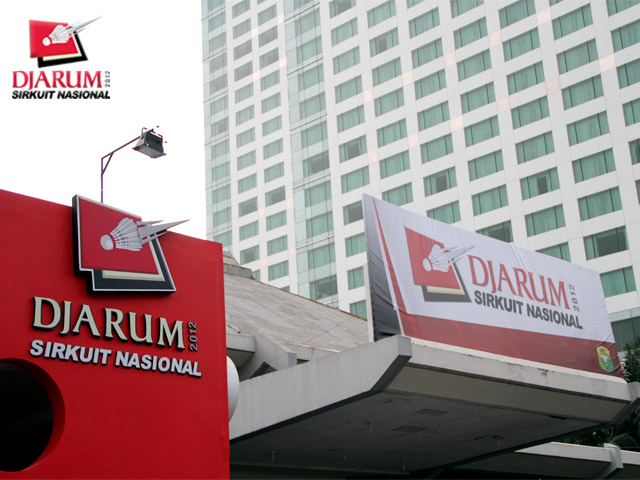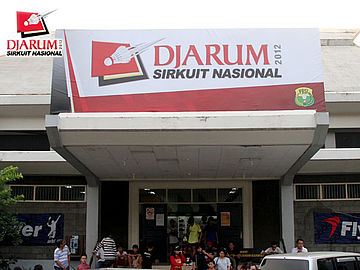 Logo Djarum Sirkuit Nasional 2012 Menyambut Para Peserta dan Penoton yang Datang ke Hall Asia Afrika Jakarta